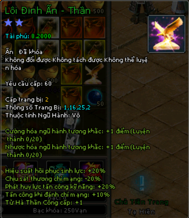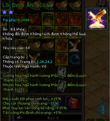| Nguyên Liệu | Cấp Nhân Vật | Thông tin Lôi Đình Ấn |